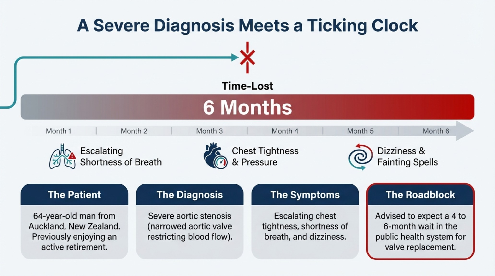 The challenge was timing. According to the family, the expected wait in the New Zealand public system was roughly 4 to 6 months. With symptoms worsening, that timeline felt difficult for the family to accept, and they started exploring whether earlier specialist review might be possible abroad.