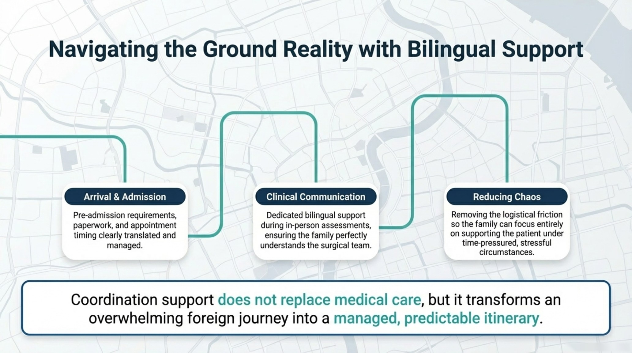 The family described feeling reassured by having help with translation, hospital communication, and travel logistics. That kind of support does not replace medical care, but it can make the overall treatment journey more understandable and less chaotic for patients and relatives.