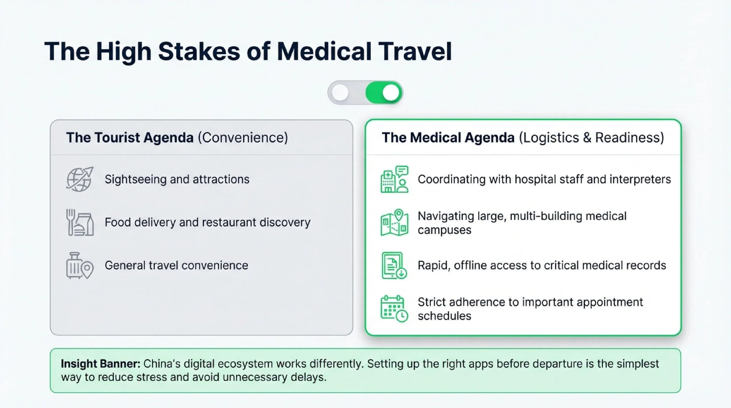 Most online lists of “must-have apps for China” are written for tourists. They focus on sightseeing, food delivery, and travel convenience. But if you are coming for treatment, your priorities are different. You may need to communicate with hospital staff, navigate a large medical campus, pay for pharmacy items, access medical records quickly, and stay on schedule for important appointments.