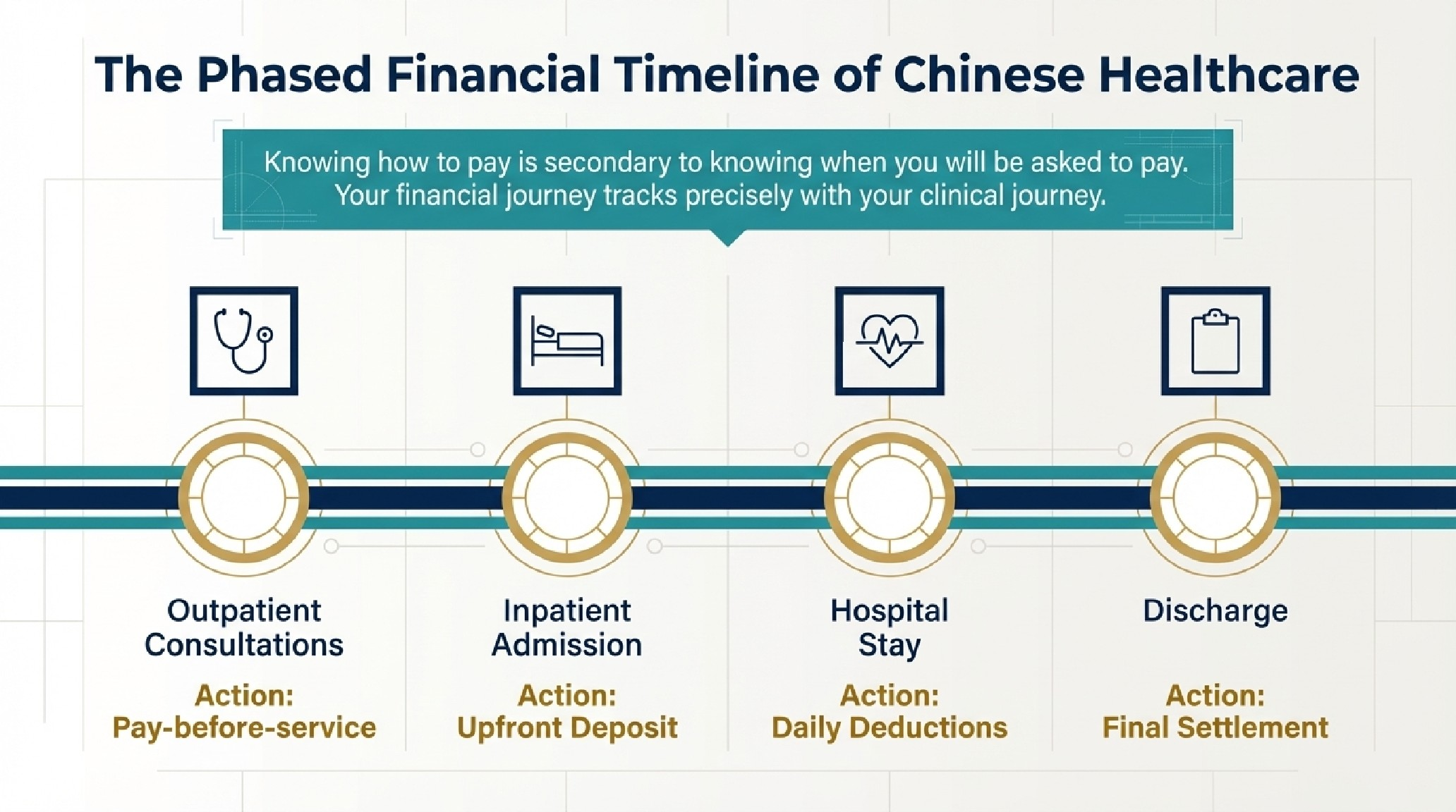 Understanding when you will be asked to pay is just as important as knowing how to pay. The following reflects how billing typically works across a standard inpatient journey in a Chinese public hospital.
