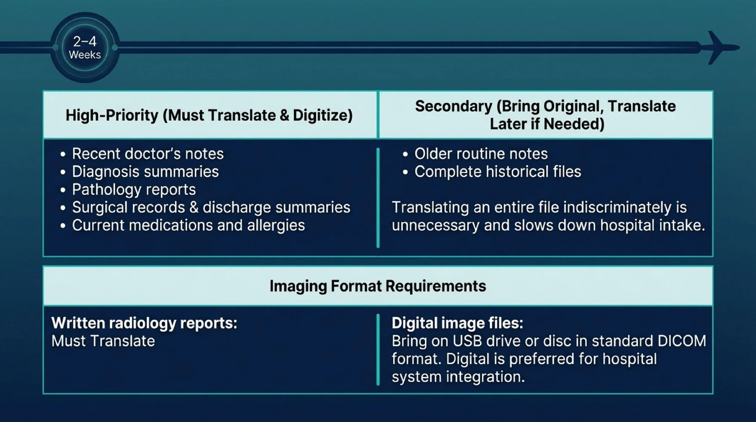 2–4 Weeks Before Departure: Confirm the Core Medical and Travel Arrangements