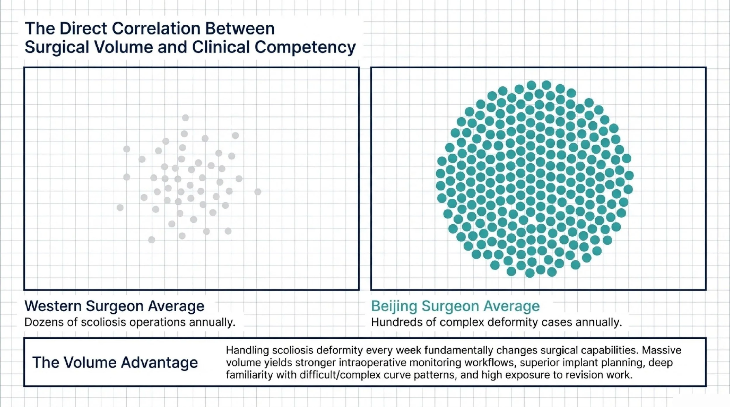 In many Western settings, even strong spine surgeons may perform only dozens of scoliosis operations a year. In contrast, top Beijing tertiary centers report much larger spine surgery volumes, and senior surgeons in these systems may participate in hundreds of complex deformity cases annually.